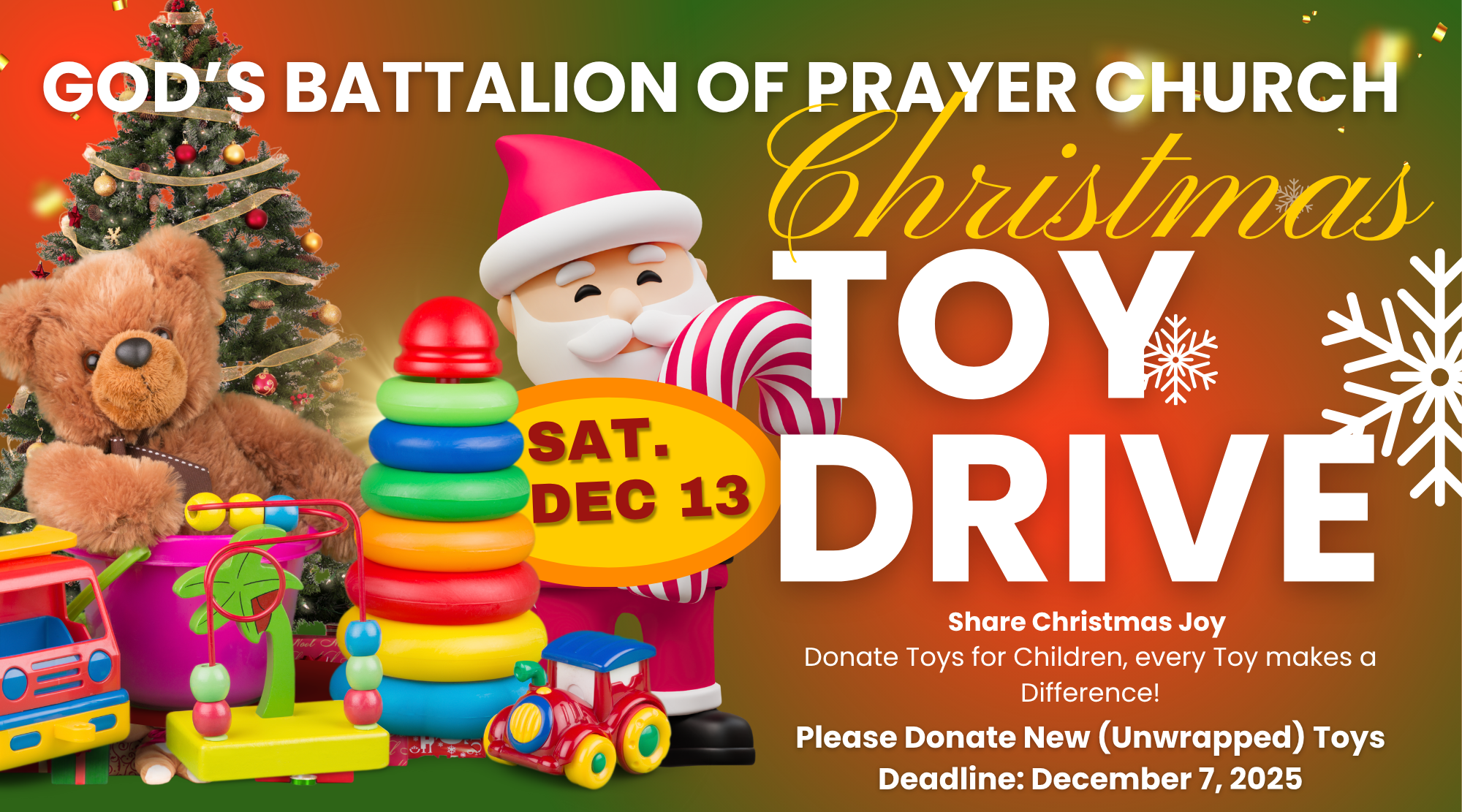 Please bring your donations to the church by December 7th. The toys will be distributed on December 13th—thank you for helping us share the love of Christ this holiday season!
